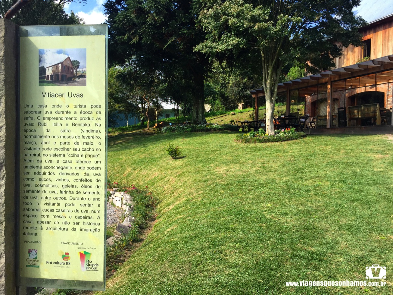 *Casa das Cucas Vitiaceri: Funciona diariamente das 9h às 18h, sem fechar ao meio dia. Oferece também piqueniques.