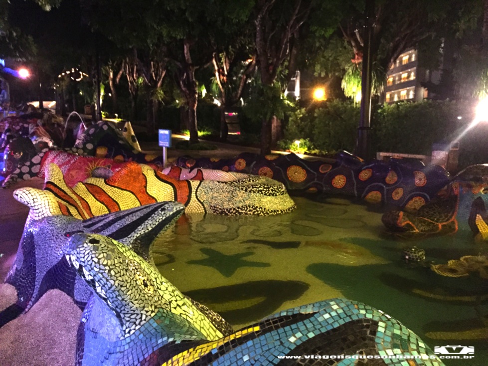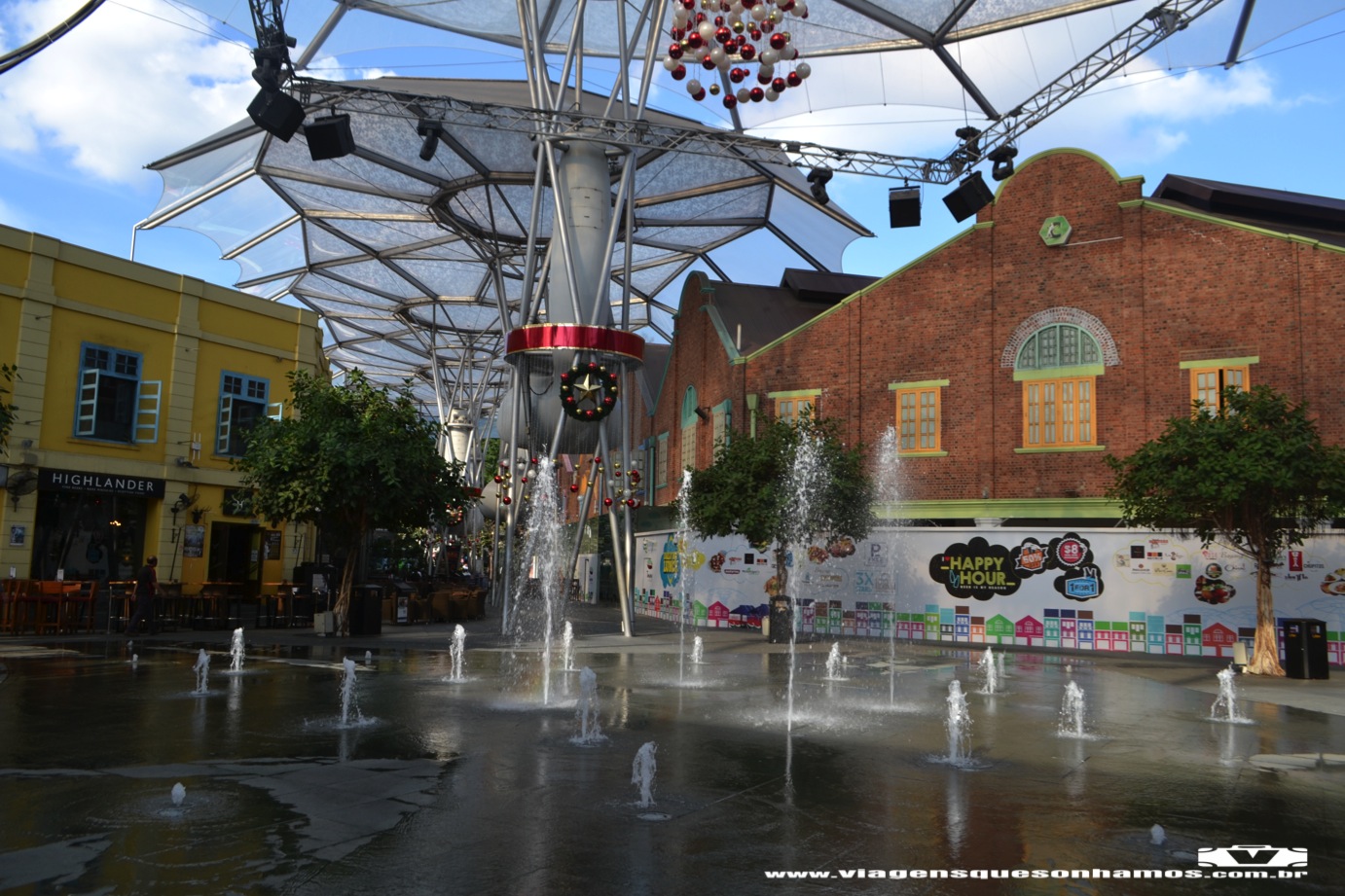Quando a chuva passou já era final da tarde e fomos conhecer um pouco das atrações. Fomos até a Beach Station, onde estava acontecendo um show de músicas e luzes de Natal. Todas as áreas de Sentosa estavam decoradas e iluminadas para o Natal. Passamos pelo Merlion Walk, uma espécie de parque a lá Gaudi (lembra muito Barcelona), passamos pelo Sentosa Merlion, a famosa estátua que é símbolo da cidade, e fomos em direção ao World Resorts Sentosa. Uma área cheia de restaurantes, atrações e cassino. Assistimos os show de água no Lake of Dreams e seguimos até a Sentosa Boardwalk para assistir ao show Crane Dance. Infelizmente o show iniciou duas vezes, mas em função da chuva, teve problemas técnicos e foi cancelado. Todos esses shows são gratuitos. Voltamos para o hotel porque o dia seguinte seria dia de Universal Studios.