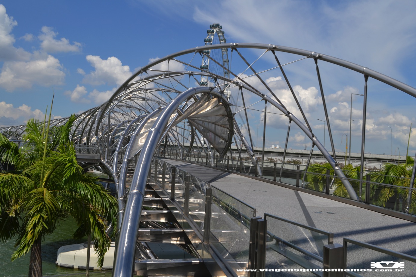 Eu não sou muito fã de museus, mas esse impressiona muita pelo seu formato externo de flor. Quando visitamos estava ocorrendo uma exposição sobre Hermés e outra sobre o Premio Nobel. A entrada foi gratuita. Seguimos nosso passeio atravessando a Helix Bridge, uma ponte para pedestres, em um formato totalmente futurista e fomos caminhando até o Merlion Park, conhecer a estátua símbolo de Cingapura: metade leão, metade sereia, que fica posicionado de frente ao Marina Bay Sands.