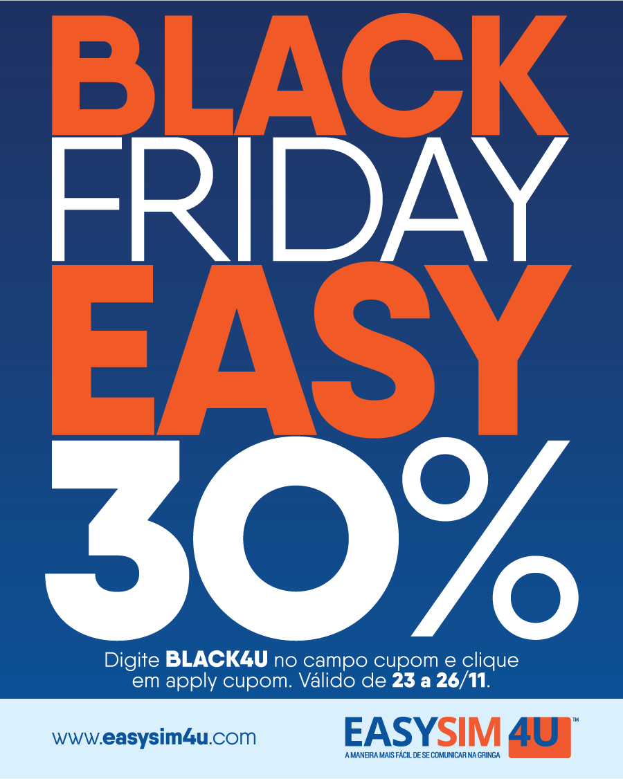 A EasySim4U que eu sempre recomendo aqui no blog e nós já testamos nos Estados Unidos, no Caribe e na África do Sul, está oferecendo 30% de desconto nas compras de chip efetuadas entre os dias 23 e 26 de novembro, para todos os tipos de planos.