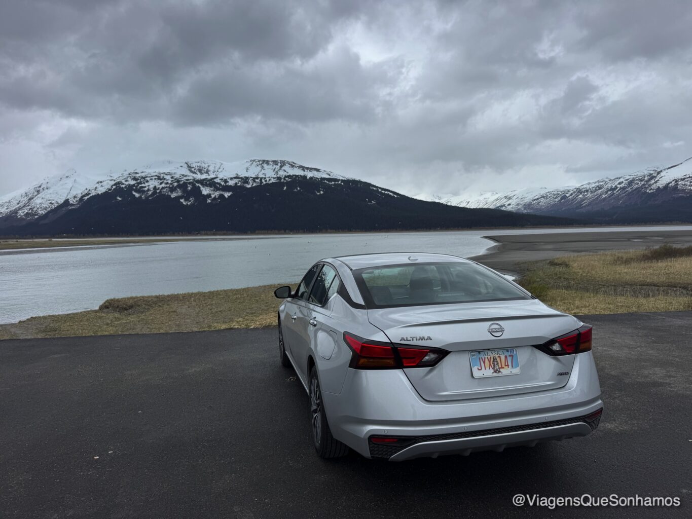 Chegamos no aeroporto de Anchorage, vindos de Seattle e fomos pegar o carro alugado. Para aproveitar melhor a região de Anchorage, é necessário estar com carro alugado. Como sempre, alugamos ainda no Brasil, pagando em reais com a RentCars. Saindo do aeroporto já ficamos encantados com a paisagem.