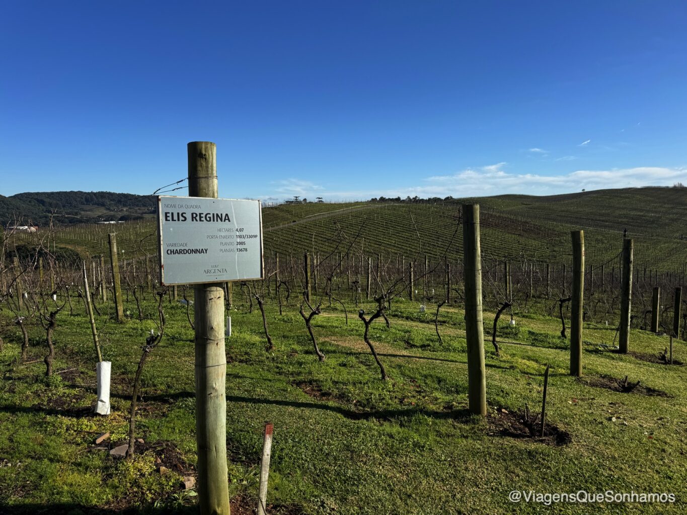 Entre as vinícolas em Flores da Cunha, a Luiz Argenta conquista pela arquitetura moderna e pelo cuidado com cada detalhe da produção. Inaugurada em 2004, sua cave figura entre as 50 melhores vinícolas do mundo e no Top 10 da América Latina, segundo a Revista Adega. Com 60 hectares de vinhedos cultivados ao redor da propriedade, impressiona pela qualidade dos vinhos e pelo visual imponente, que incorpora o basalto histórico da região. Esse elemento não apenas proporciona conforto térmico, como também cria um cenário único. Durante o passeio pelos vinhedos, cada quadra leva o nome de personalidades brasileiras, como Elis Regina e Oscar Niemeyer.