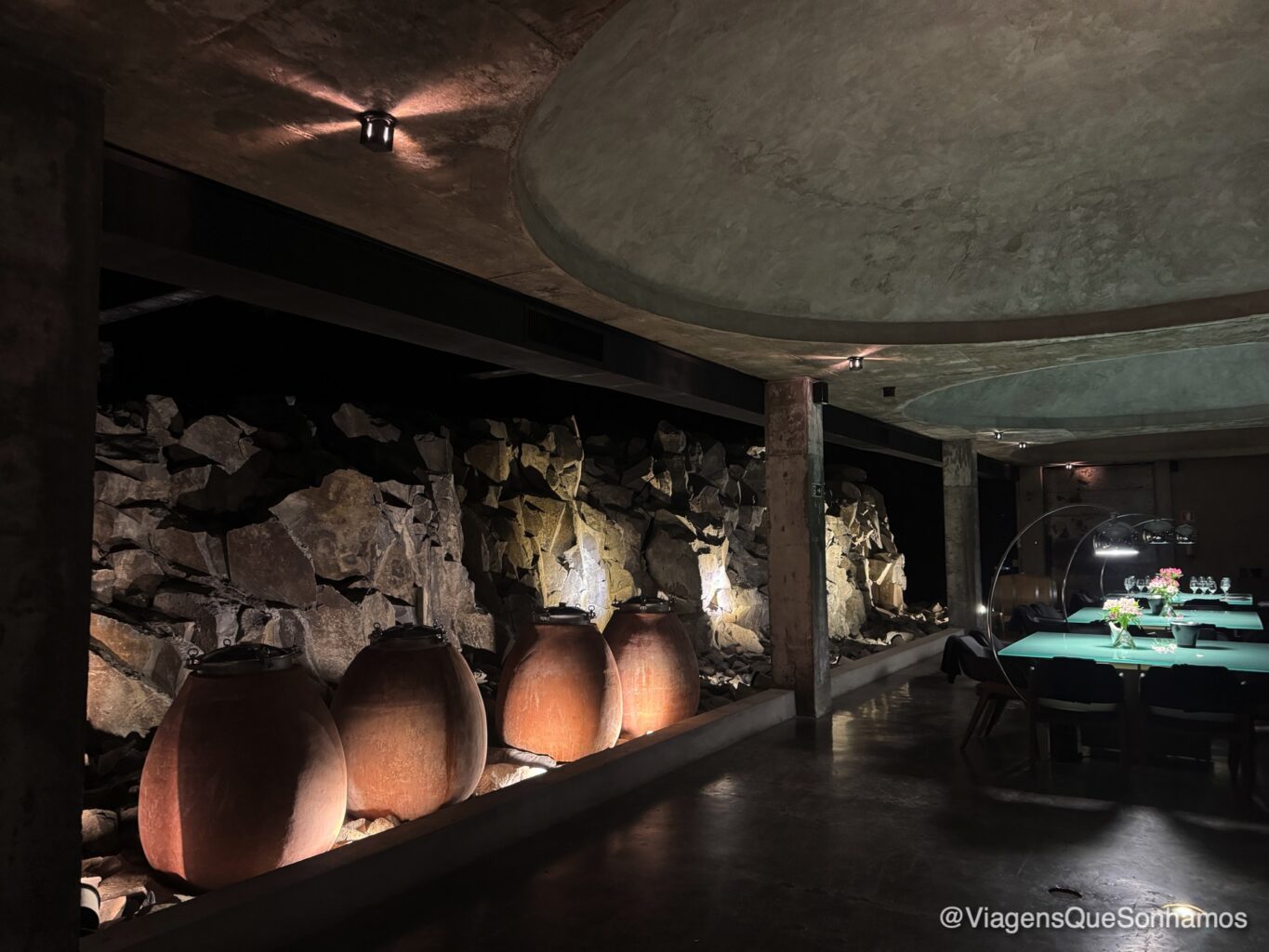 No Tour entre Caves, degustamos alguns rótulos da vinicola, enquanto conhecemos o processo de produção , seguimos pelo charmoso “corredor de borbulhas” até a cave dos espumantes e a sala de barricas. Ali, o basalto e as abóbadas de concreto oferecem acústica perfeita para a trilha sonora brasileira, que embala a experiência. Para iniciar a degustação, brindamos com um elegante Blanc de Noir, que apresentou de imediato a identidade da vinícola.