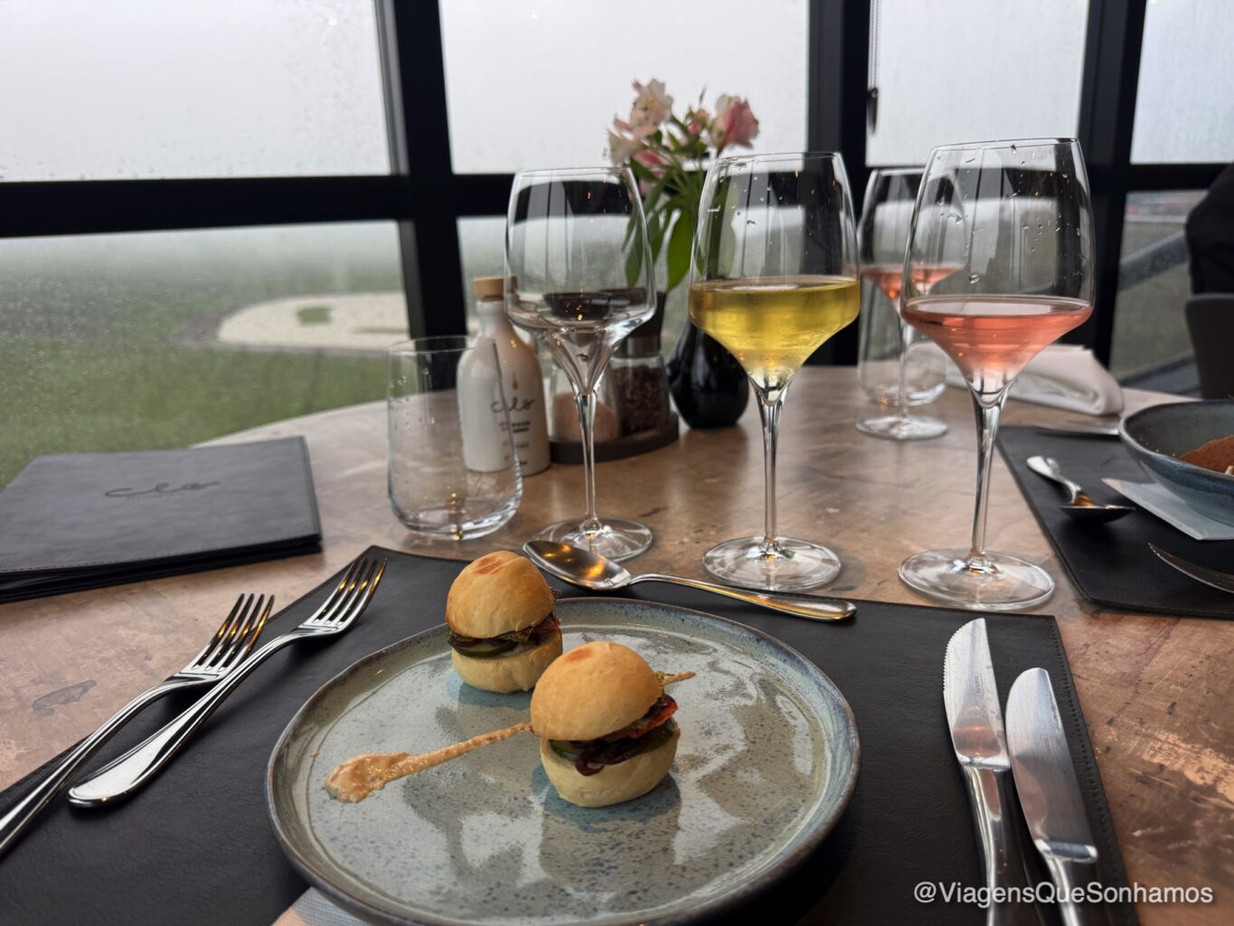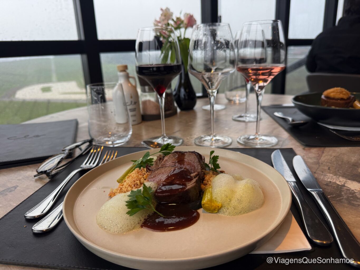 Depois do tour, vivenciamos outro momento marcante no Restaurante Clô, localizado dentro da vinícola e com vista panorâmica para os vinhedos. O cardápio, oferece opções de menu harmonizado com os vinhos Luiz Argenta e também opções ala carte. Almoçar no Clô vai muito além de uma refeição: é contemplar a paisagem, desfrutar da alta gastronomia e viver o enoturismo em sua forma mais sofisticada. Por isso, incluir a Luiz Argenta no roteiro por Flores da Cunha significa unir vinho, arquitetura e experiências memoráveis em um só lugar.